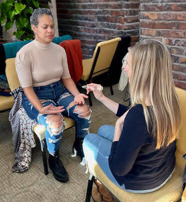 Pranic healing can take place in-person or remotely via telephone or Zoom. For ultimate receptivity, the client sits or lies down in a comfortable position, puts their tongue on the roof of their mouth and practices guided breath work. Arms and legs should lie relaxed against the body in loosely fitting clothes.